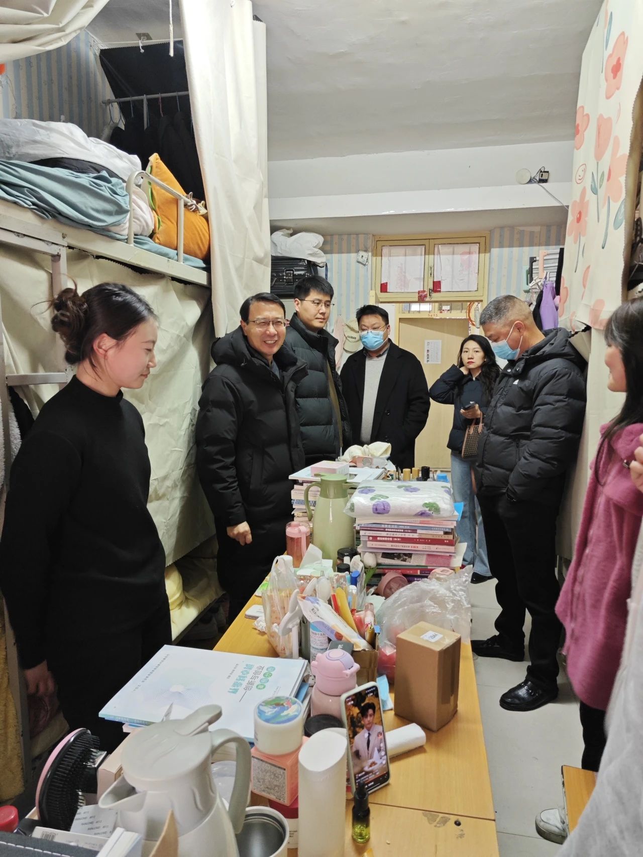 检查过程中,学院领导与学生亲切交流,详细了解新学期的学习生活适应情况,听取学生对宿舍管理的意见建议,并强调宿舍是校园生活的“小家”,需共同维护安全、整洁的环境。耿鹏坤指出:“安全无小事,防患于未然。同学们要树牢‘安全第一’理念,严守校规校纪,以良好的精神面貌迎接新学期挑战。”冯俊强勉励学生要把宿舍作为自我管理的重要阵地,涵养文明习惯,营造互助友爱的集体氛围。
