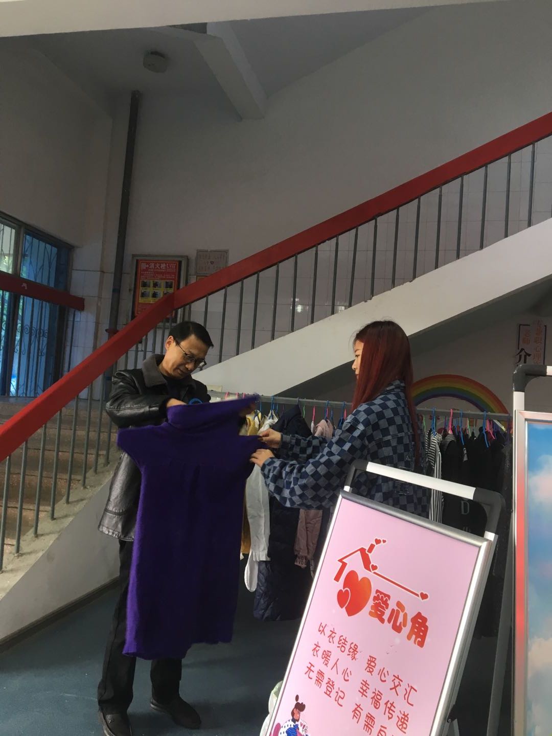党员教师向学生捐献衣物