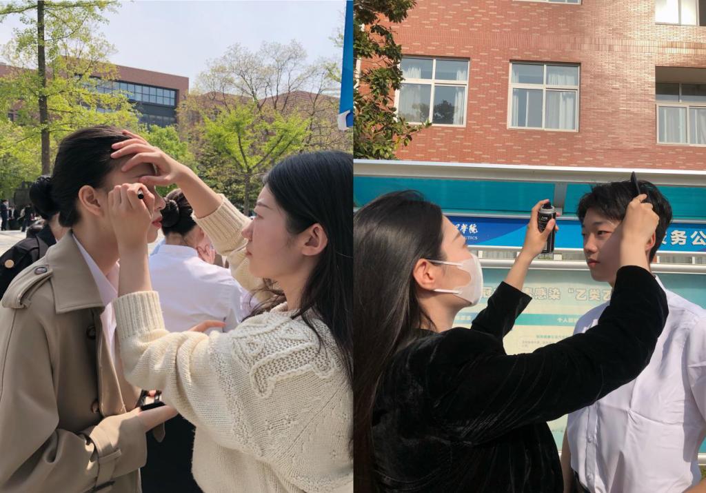招聘会现场人流如潮,约有近800名考生来参加此次招聘,除本校空乘专业学生,也有来自其他省份学校的学生及之前有过航司飞行经验的成熟乘务员。当天两位带队老师提前到达面试地点,对每位学生的妆容、衣着、发型进行检查与调整。之后学生每10人为一组进场进行个人整体形象与综合表现的面试考察,现场评委老师通过举牌投票决定考生通过与否,面试时长持续五个小时。
