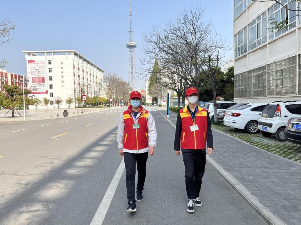 学校西操场、服装创意园、北区家属院附近、东操场浴池周边,四处可见旅航院志愿者的红色身影。他们倡导宣传规范佩戴口罩、排队保持一米线、分时段就餐,参与配合校园疫情联防巡查,对学校内出现的不文明行为进行教育劝导,加强空档时间的检查和管理,减少学生违纪现象的发生。