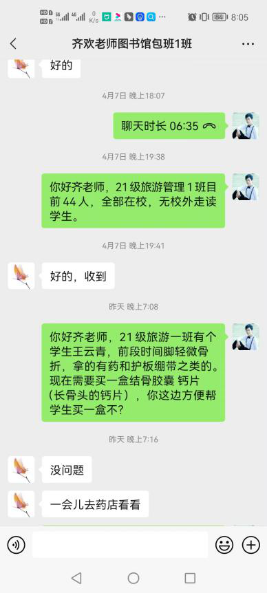 (我院包班党员图书馆齐欢老师得知消息后第一时间帮学生购买了药物)