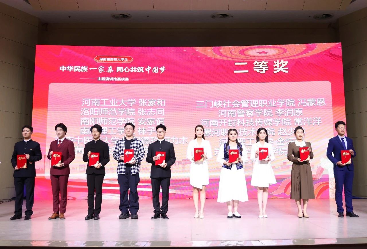 10月27日,由中共河南省委教育工委、省教育厅主办,河南师范大学承办的全省高校大学生“中华民族一家亲,同心共筑中国梦”主题演讲比赛省级决赛在河南师范大学帕瓦罗蒂音乐厅举行。我校获优秀组织奖、我系2023级空乘一班赵少林同学获得总决赛二等奖。