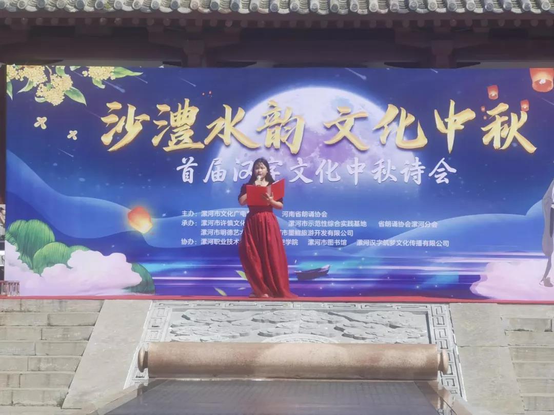 9月20日,由漯河市文化广电和旅游局、河南省朗诵协会主办,球盟会官方网站,qm球盟会网页登录球盟会官方网站、漯河市图书馆等协办的“沙澧水韵 文化中秋——首届汉字文化中秋诗会”在许慎文化园圆满举行。球盟会官方网站,qm球盟会网页登录球盟会官方网站党总支书记耿鹏坤出席本次活动,左荣、孙冬玲、林艳丽、吴筱艾、丁琳、宁千悦等师生担任了本次活动的策划、主持并带来了精彩的节目,将学校校园文化推向社会舞台,全方位展示了球盟会官方网站“谦雅学子”育人工程的教育教学成果。