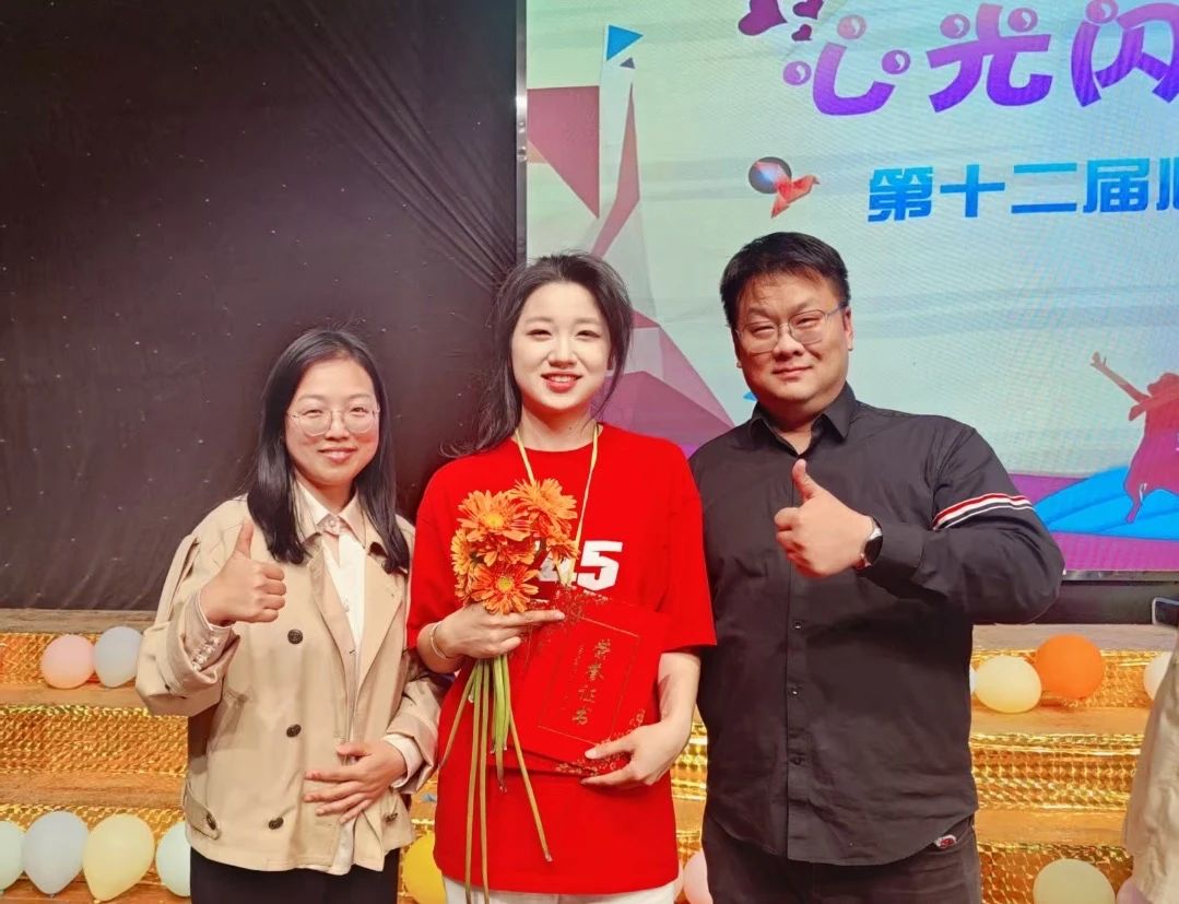本届大赛以“心光闪耀,青春同行”为主题,自3月启动以来,吸引了全校各院系学生积极参与。经过初赛、复赛的层层选拔,12名优秀选手脱颖而出,晋级决赛。决赛现场,选手们通过“个性展示”“才艺表演”“情景问答”“单项奖比拼”四大环节展开全方位较量,充分展现了扎实的心理知识素养、灵活的应变能力及昂扬向上的青春风貌。我系王梦迪同学以温暖从容的台风、富有感染力的表达及扎实的心理学功底,在评委评审、学生代表投票与公众号票选中均获高度认可,获得第十二届“心理健康形象大使”称号和“最佳亲和力奖”。