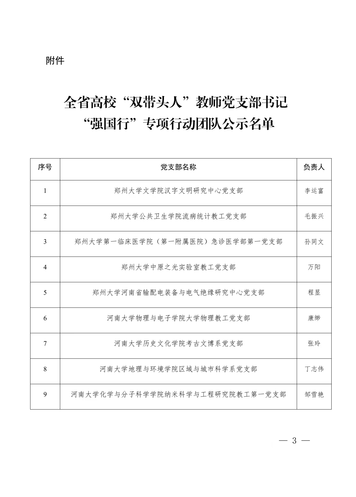 全国高校“双带头人”教师党支部书记“强国行”专项行动团队公示名单
