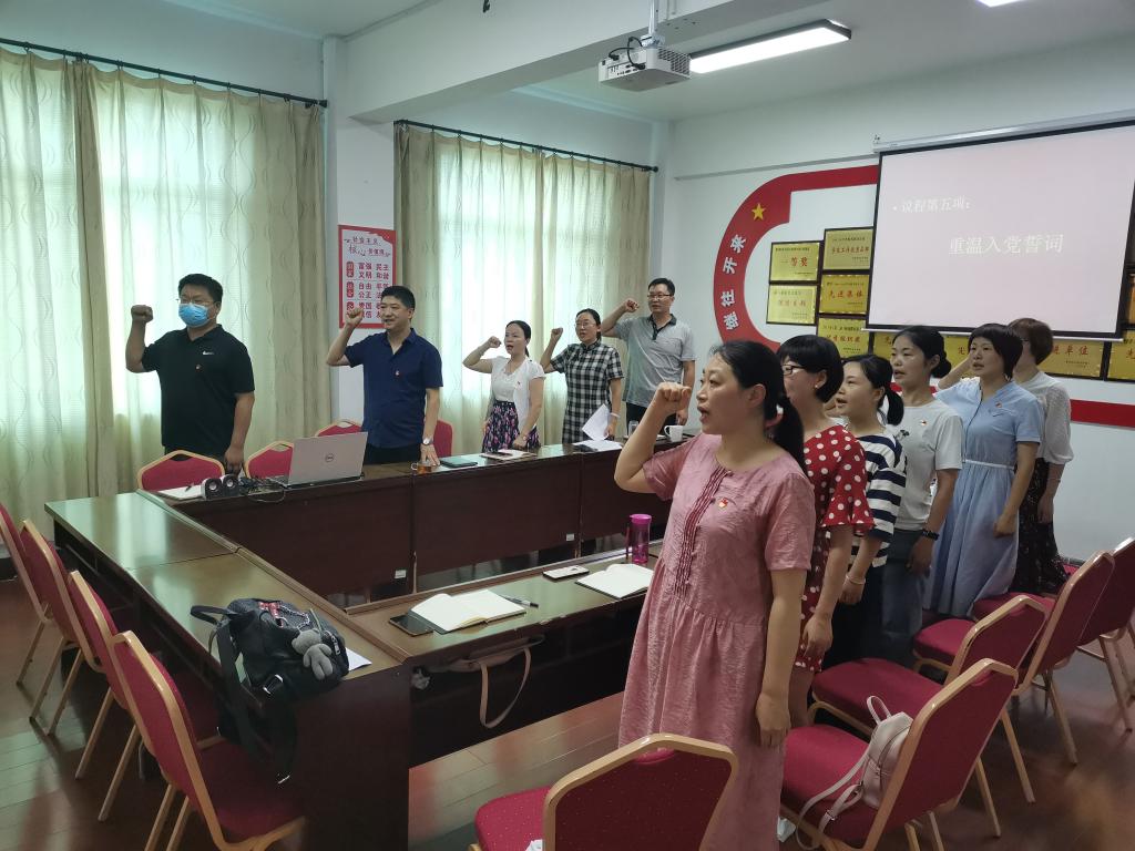最后,与会党员面向党旗,在团总支书记潘智睿的带领下,重温了入党誓词。